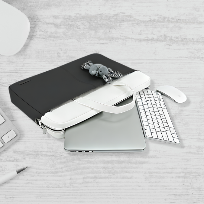 This laptop bag features a minimal yet premium design in a beautiful pink and white color combination, making it suitable for: