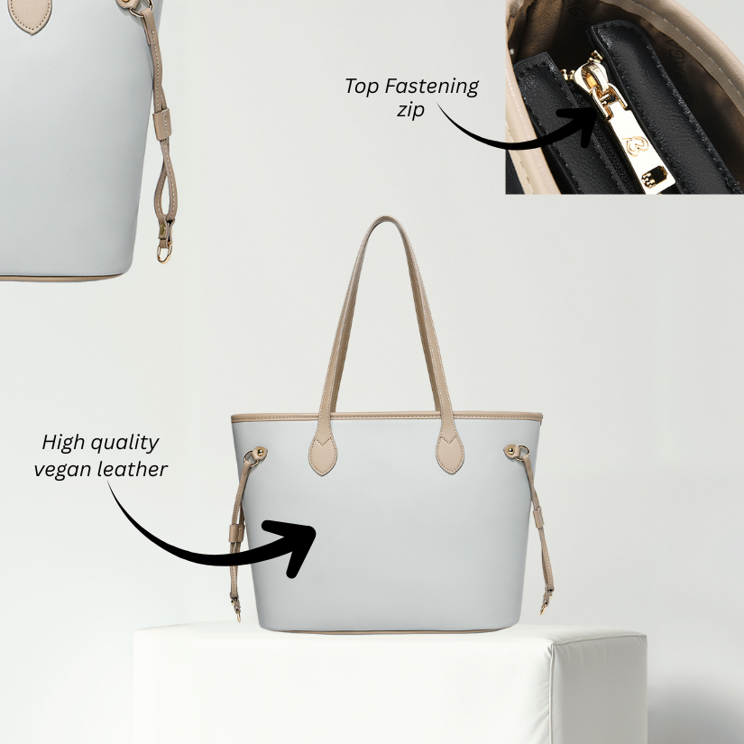 Step into timeless elegance with the Bagabu Premium Tote Bag, designed for modern women who value style, comfort, and functionality. Crafted from high-quality PU leather with a smooth matte finish, this tote combines a classic Gray body with contrasting beige handles—giving it a sophisticated, upscale look.