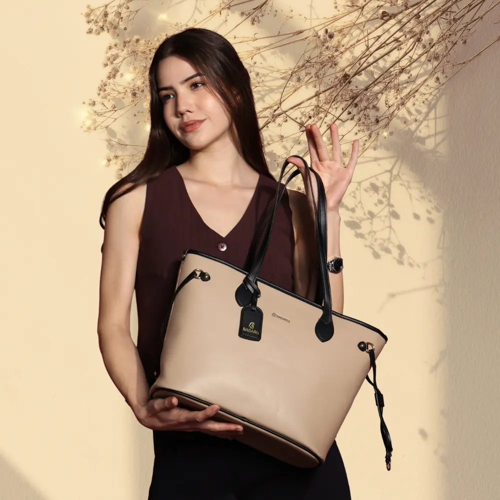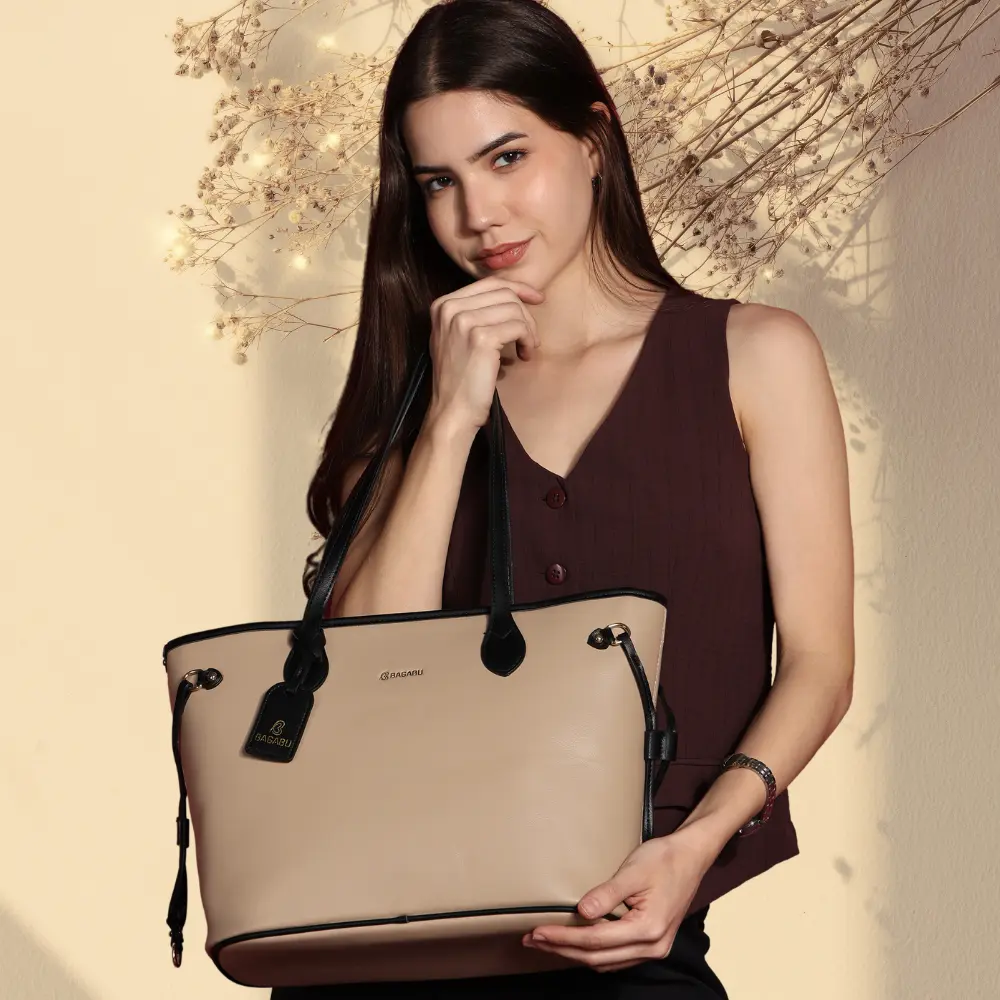 Step into timeless elegance with the Bagabu Premium Tote Bag, designed for modern women who value style, comfort, and functionality. Crafted from high-quality PU leather with a smooth matte finish, this tote combines a classic Khaki body with contrasting beige handles—giving it a sophisticated, upscale look.