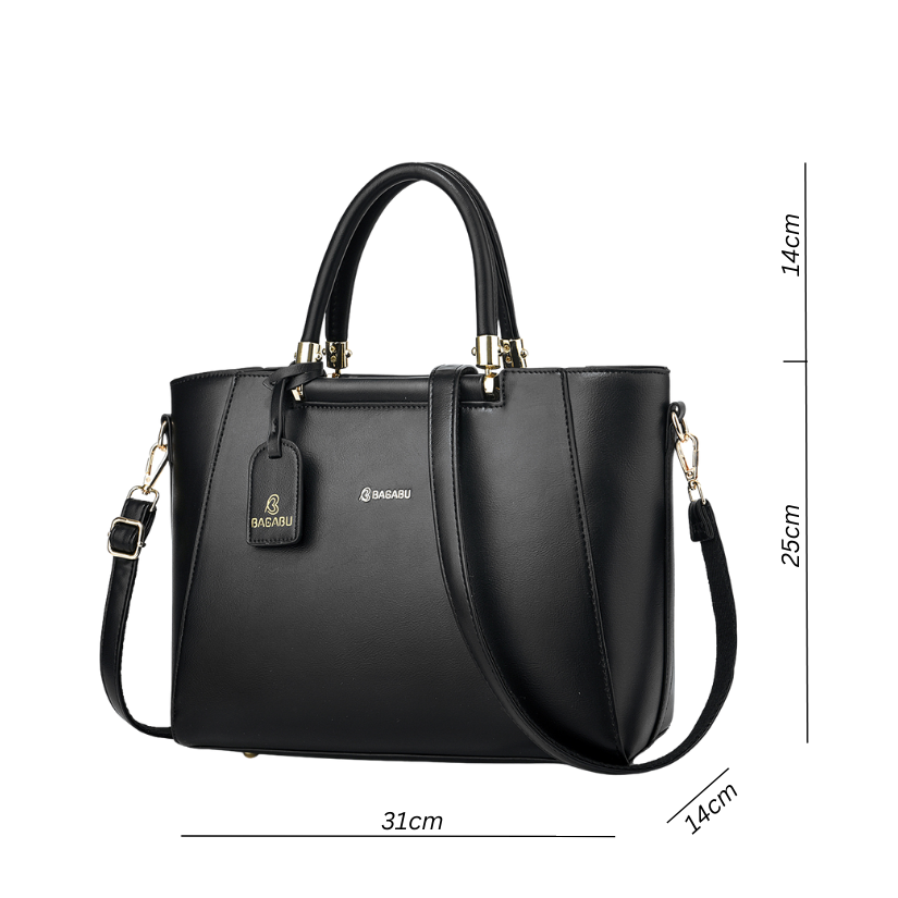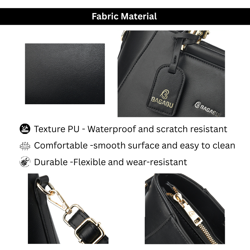 Discover timeless elegance with the Bagabu Premium Black Handbag, designed for modern women who want style, comfort, and unmatched functionality. Crafted from high-quality PU leather, this structured handbag features a sleek matte finish, refined stitching, and signature gold Bagabu branding—perfect for office, travel, and daily outings.