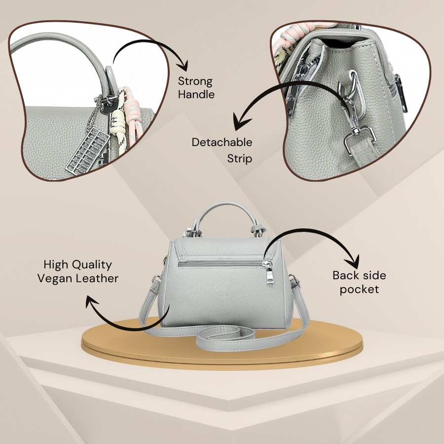 Step into elegance with this Baby Gray Textured Handbag, crafted for women who love style, grace, and functionality. Designed with a soft PU leather flap and a woven textured base, it blends luxury and durability beautifully. The chic mini pouch charm adds a trendy twist, while the spacious interior ensures ample room for your essentials. Perfect for work, parties, or everyday outings, this handbag enhances any outfit with a sophisticated touch.