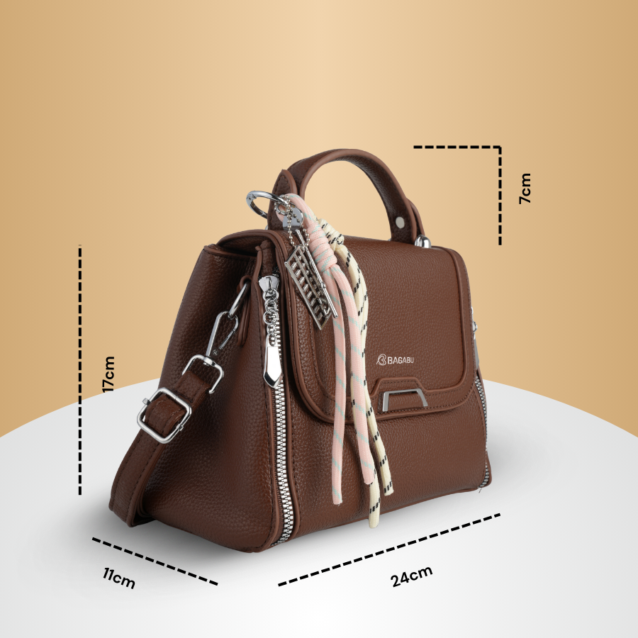 Step into elegance with this Rich Brown Textured Handbag, crafted for women who love style, grace, and functionality. Designed with a soft PU leather flap and a woven textured base, it blends luxury and durability beautifully. The chic mini pouch charm adds a trendy twist, while the spacious interior ensures ample room for your essentials. Perfect for work, parties, or everyday outings, this handbag enhances any outfit with a sophisticated touch.