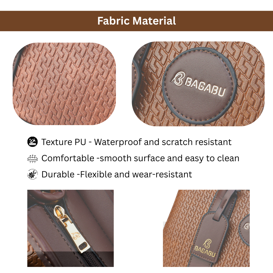 Add sophistication to your everyday look with this Luxury Textured Two-Tone Handbag Set, crafted from premium vegan leather for a rich and refined finish. The bag features a beautiful embossed texture in Nude Pink, complemented by deep brown panels and elegant gold hardware that exude timeless charm. This 3-piece combo includes a spacious handbag, a matching wallet, and a card holder—perfect for work, travel, or casual outings. Designed to balance style, functionality, and durability, this set is a must-have for every modern woman who loves classic elegance with a modern twist.
